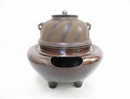唐銅朝鮮風炉霰真形釜添 銀摘み