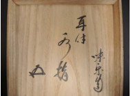 お茶道具買取で主に評価されるお道具は、お写真の様な家元さんの書付のあるお道具や、人気作家さんの作品です。お写真のお道具は高取焼の水指で、可愛らしい耳が両脇に付いています。高取焼の人気作家、亀井味楽さんの作品で共箱を見ると鵬雲斎さんの書付がございます。お茶道具を出張買取させて頂いたお茶の先生がお茶会でお使いになっていた水指です。