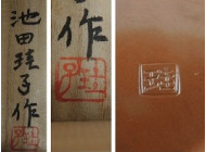 共箱には銅金銀彩建水と書かれており、作者は池田珪子です。