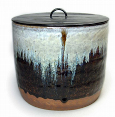 愛知県瀬戸の陶磁器で、水指としての形状は円筒形や、丸壷などがあります。多くは黒釉の中に柿釉が現われ、渋味のある釉薬が見どころとなります。
